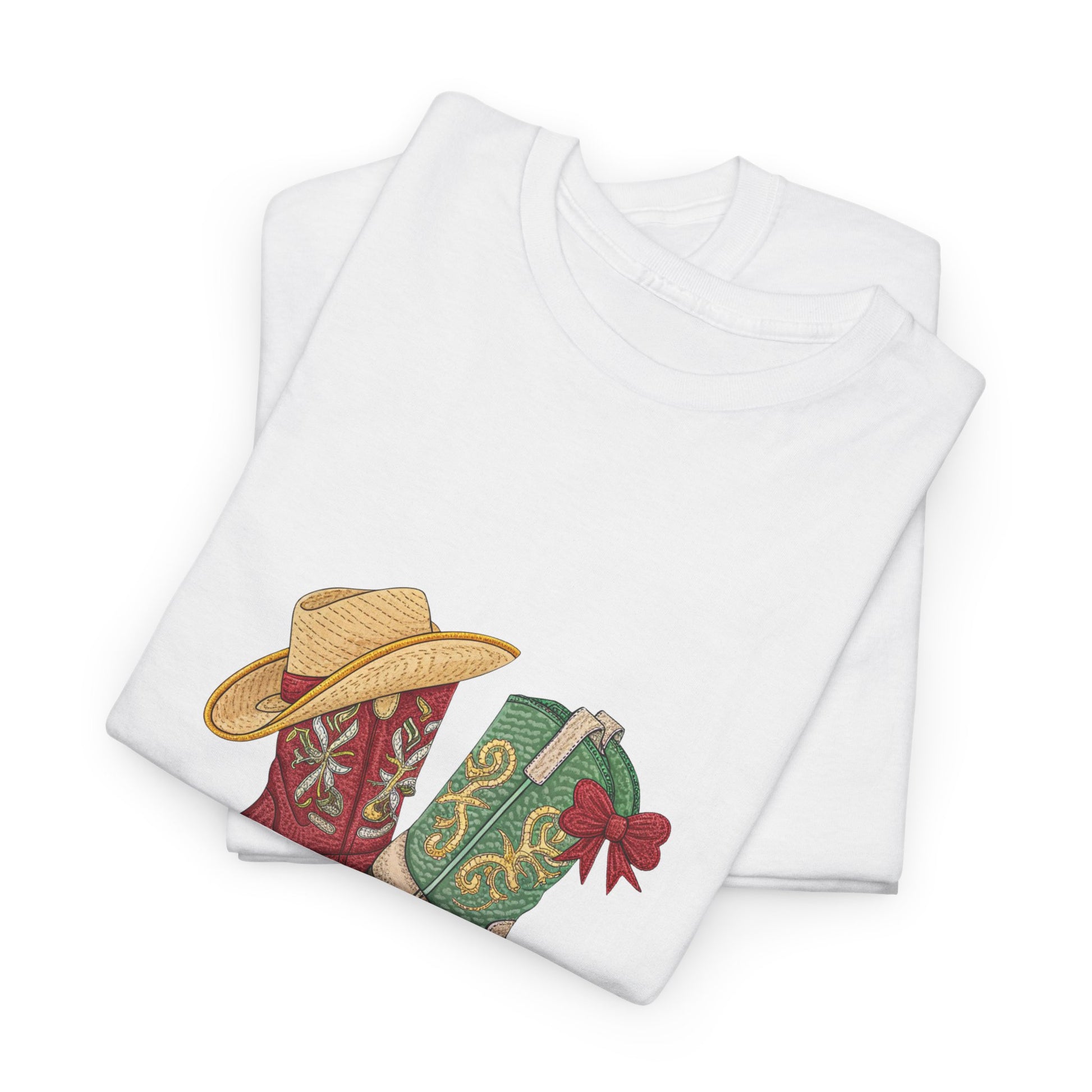 Celebrate the festive spirit with this delightful unisex heavy cotton tee, perfect for the holiday season! The vibrant design featuring festive cowboy boots combined with a charming hat evokes a sense of joy and warmth, making it an ideal choice for Christmas gatherings, parties, or casual family celebrations. Crafted for comfort and style, this tee resonates with those who appreciate unique and playful holiday themes. Whether you're gifting it to friends or adding it to your own wardrobe, it's sure to bring smiles and cheer as you deck the halls and enjoy the season. Perfect for adults who want to express their festive flair!