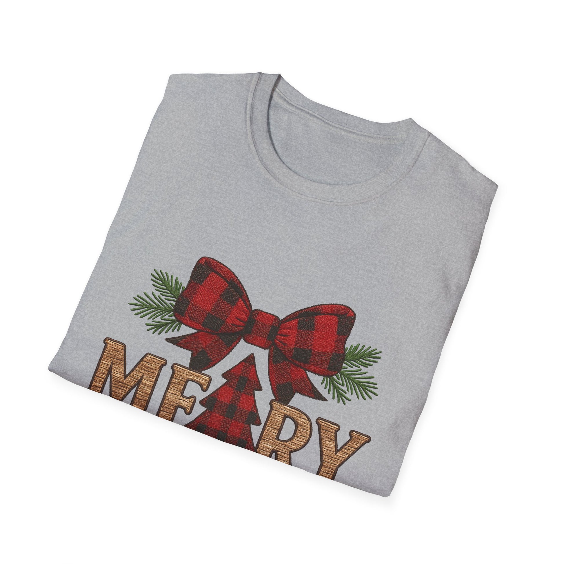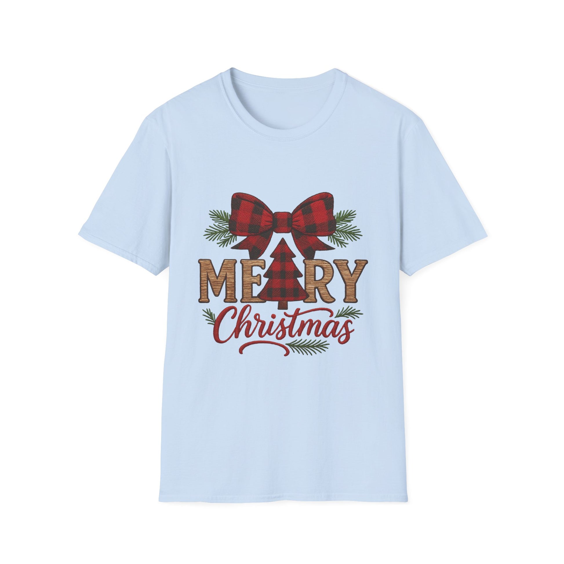 Elevate your holiday spirit with this delightful unisex softstyle t-shirt! Featuring a festive 'Merry Christmas' design adorned with a charming bow and a Christmas tree, this shirt radiates joy and warmth, making it perfect for family gatherings, holiday parties, or cozy nights in. Crafted from lightweight, 100% ring-spun cotton, it feels blissfully soft against the skin and is ideal for year-round wear. Whether you're enjoying a festive meal or giving gifts with loved ones, this shirt adds a cheerful touch to any occasion. It’s a fantastic choice for anyone looking to celebrate Christmas in style, making it an excellent gift for friends and family alike during the holiday season.