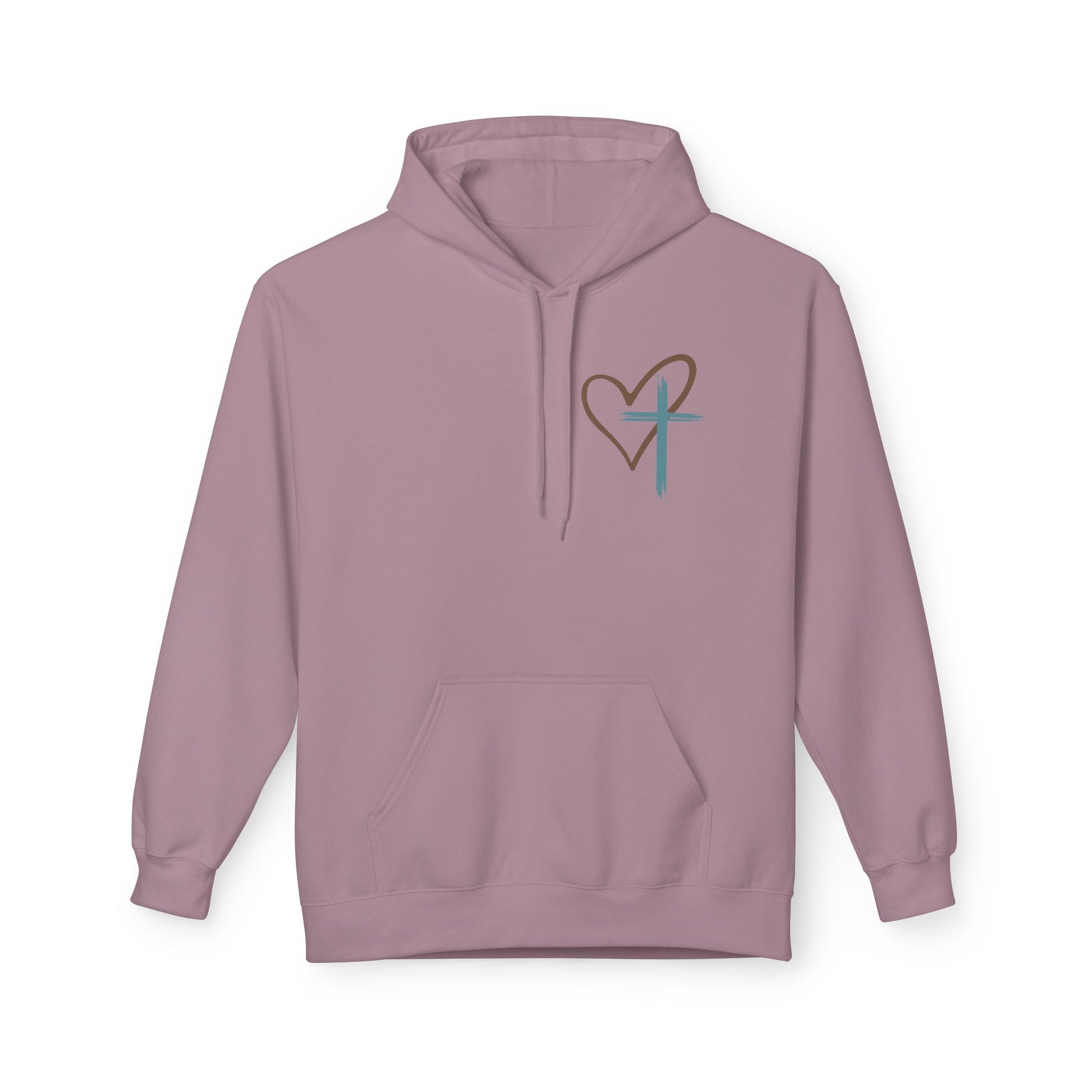 This midweight fleece hoodie carries a quiet, faithful energy — soft against the skin with an understated devotional design. A small heart-and-cross mark rests over the chest, while the back reads “Jesus has my Back” in flowing script beside a painted cross. It’s the kind of hoodie you reach for when you want comfort that reflects your beliefs: warm, relaxed, and honest. Wear it to morning coffee with the Bible study crew, on volunteer days, or when you need a gentle reminder of steady presence. The fabric feels broken-in from the first wear and the dropped shoulders create a lived-in silhouette that layers easily over tees or under coats.